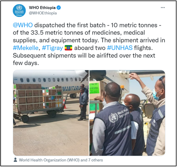 Über den Luftweg konnte WHO endlich grössere Mengen an Medikamenten in die Region Tigray liefern. Nichtsdestotrotz ist die Hilfsblockade noch immer verhängt.